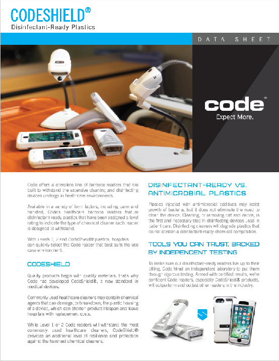 View or download the CodeShield Disinfectant-Ready Plastics Brochure